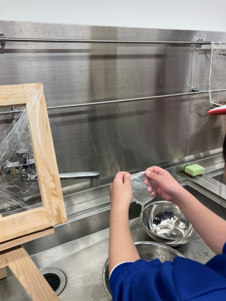 去年の夏には自分たちでもカイコを育てるため、農場へ来て飼育の仕方を勉強したり桑の葉を収穫したりしました。今度はカイコが作った繭を真綿にしてみよう!と考えて真綿蚕糸館で真綿の学習と体験をしてくれました。子供たちがカイコやシルクに興味を持ち楽しんで学習に来てくれることは、農場スタッフとしてはとても嬉しいことです。