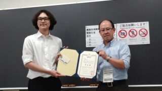 受賞 大森大地さん(修士1年、高橋研)が化学工学会第56会秋季大会にて優秀学生発表賞を受賞