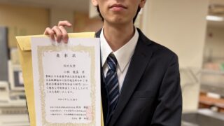 受賞 檀上真成さん(修士2年、高橋研)が化学工学会第90年会にて優秀学生賞を受賞